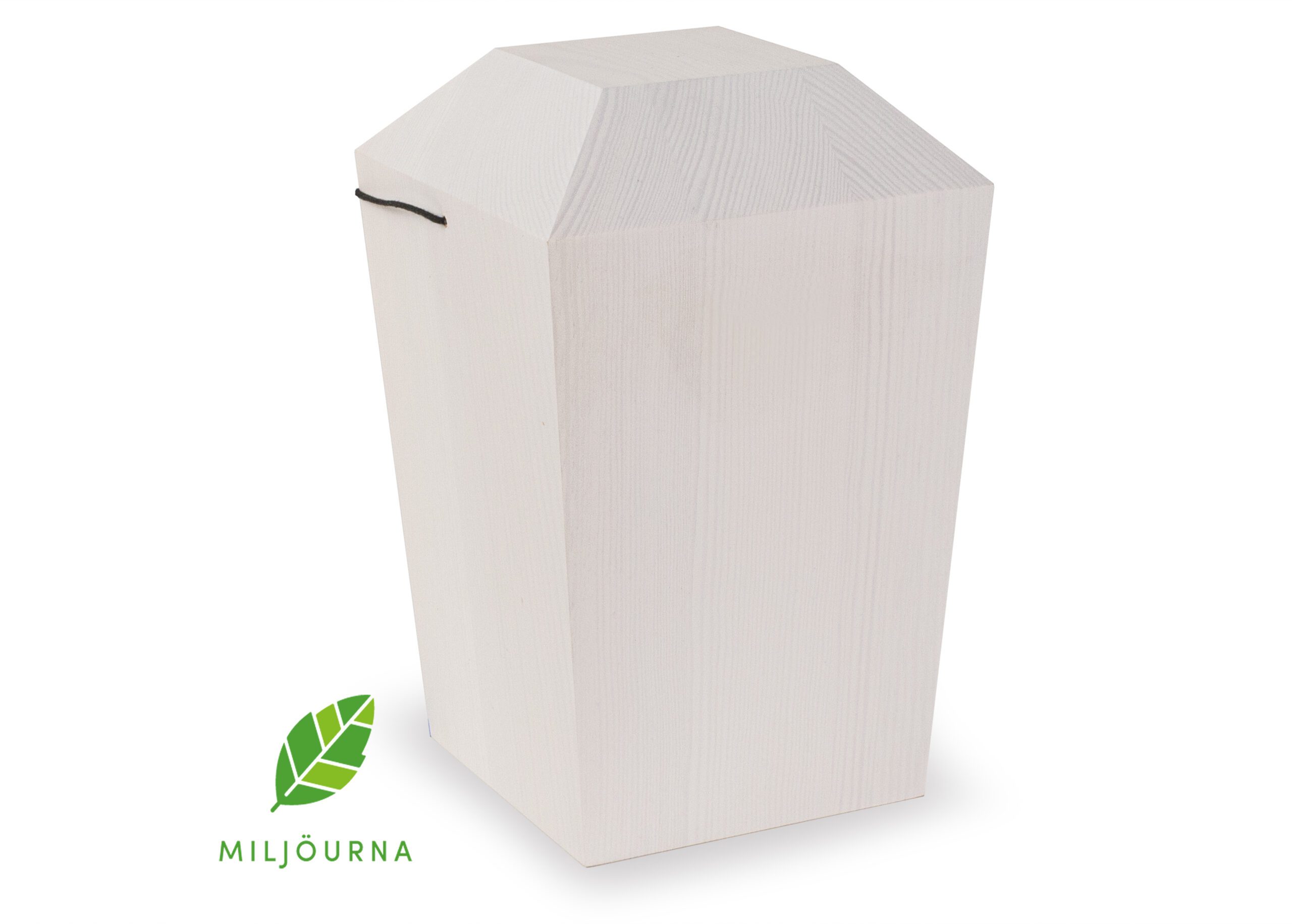 Modern är en stilren miljöurna tillverkad av massiv svensk furu. Förgänglig.