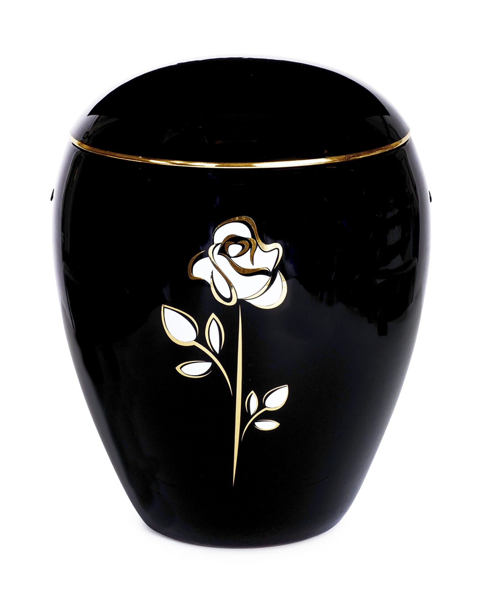 Urna tillverkad av keramik med rosdekor. Levereras med sänkband för urnsättning. Förgänglig